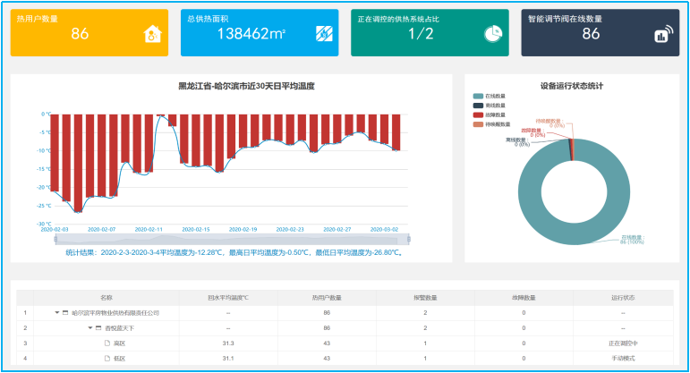 (4) 對(duì)閥門開度、溫度、壓力、通訊異常等進(jìn)行預(yù)警和處置,實(shí)現(xiàn)供熱安全。